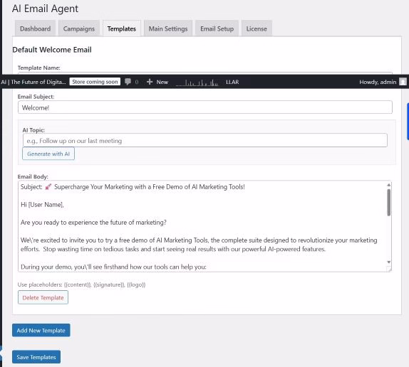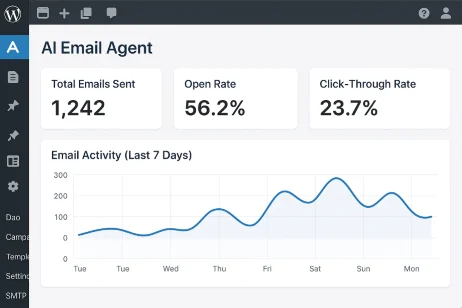 AI Email Agent is a powerful WordPress plugin that transforms how businesses handle email marketing, sales, and customer support. Powered by AI, it helps you design, personalize, and automate email campaigns with ease. From smart template generation to campaign tracking and AI-driven responses, this plugin ensures your email strategy is always optimized for engagement and results.