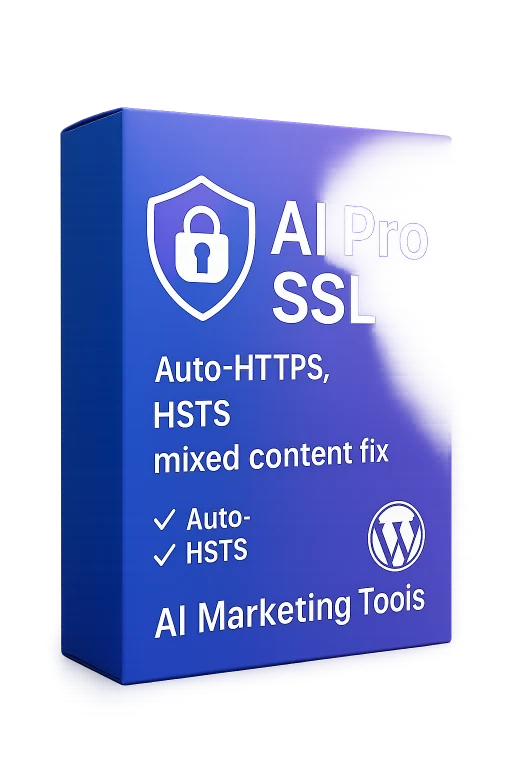 AI Pro SSL by AI Marketing Tools fixes mixed content, adds modern security headers, and guides you to a clean, secure configuration—wrapped in a sleek, distraction-free dashboard. Enjoy the full Pro feature set free for 30 days; keep using it with a license after that.